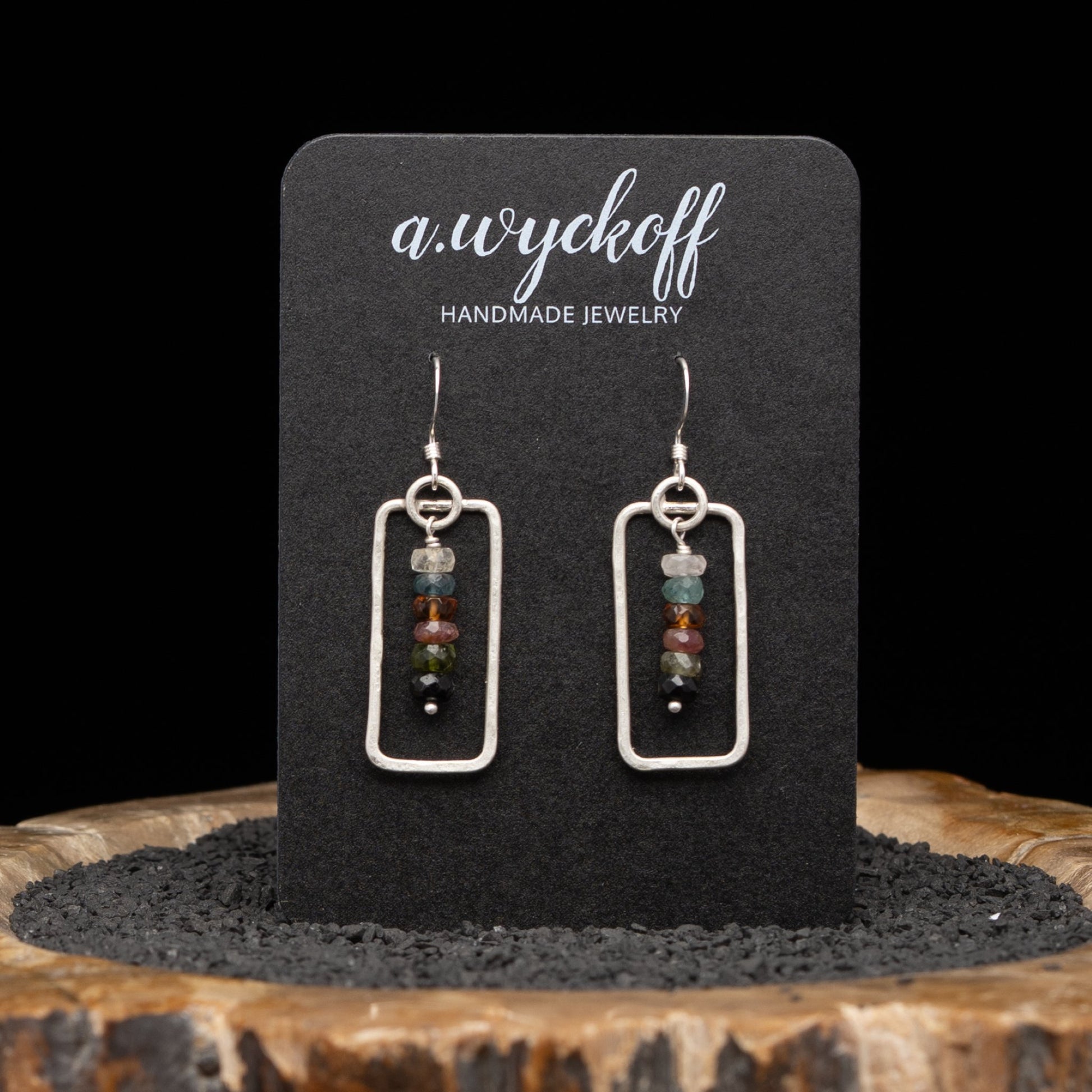 Hand formed & hammered Sterling Silver Earrings. Faceted Tourmaline Stone Beads. Sterling Silver French Earring hooks.