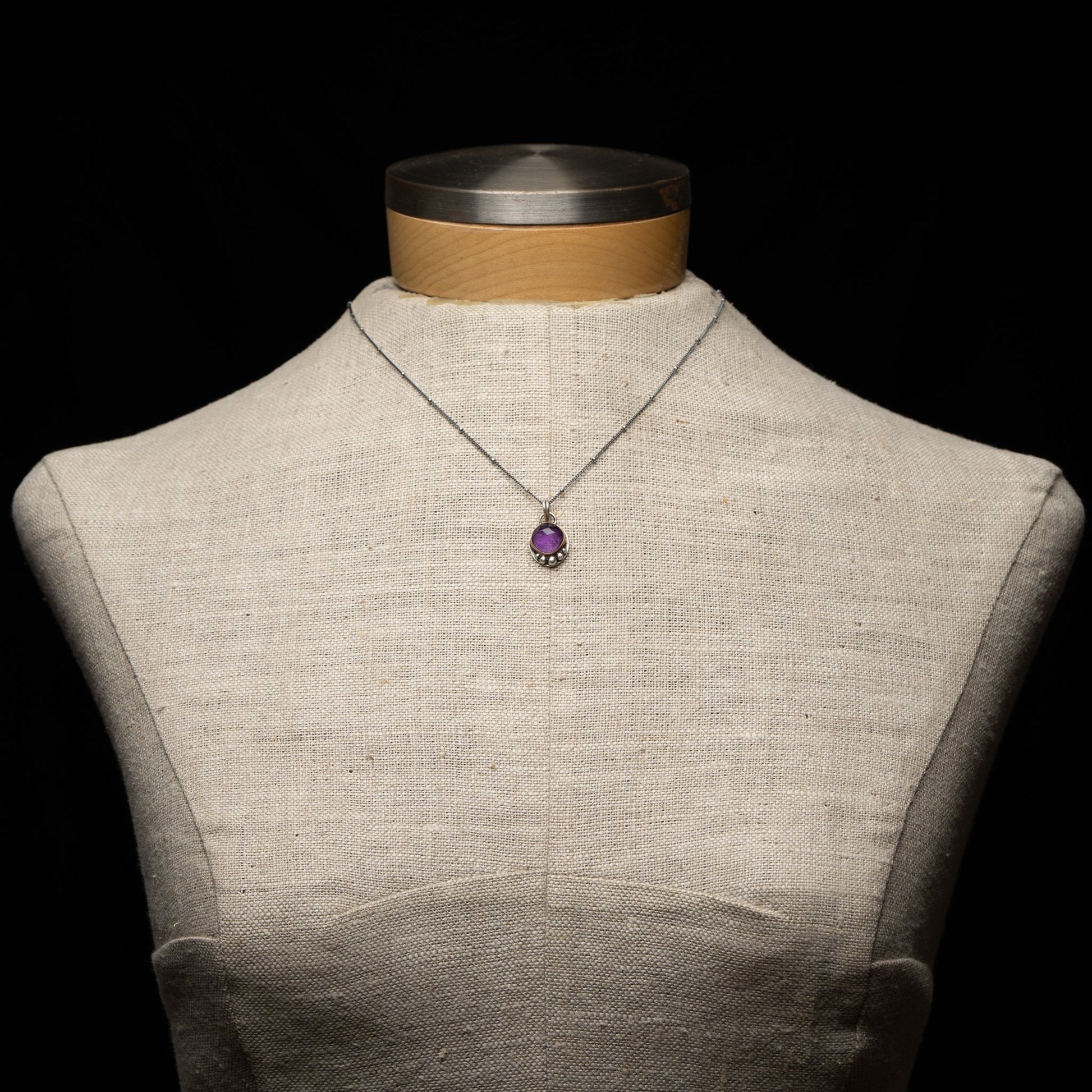 Hand patterned Sterling Silver Faceted Amethyst Pendant. Handmade Silver Accents. Hand patterned back.
