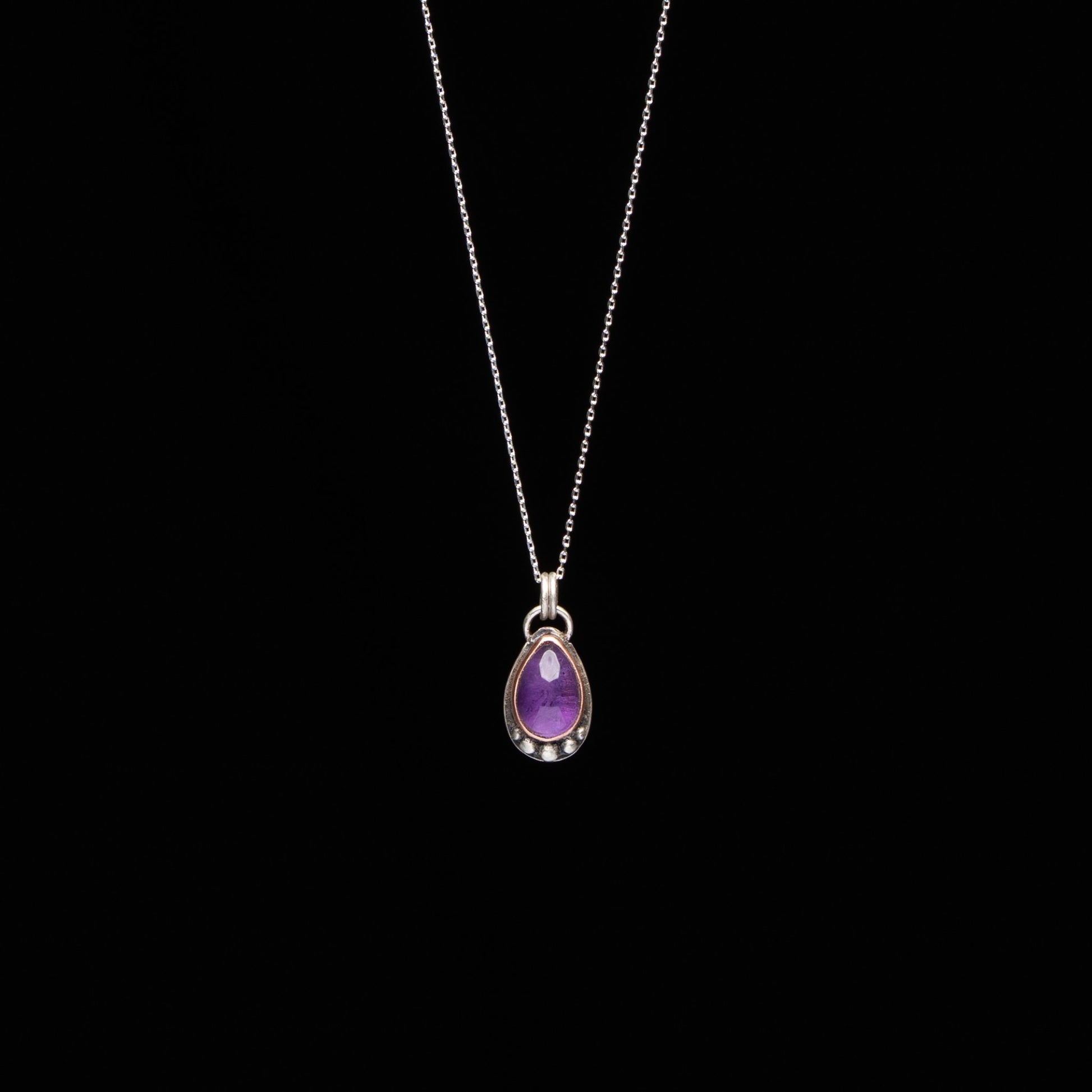 Hand patterned Sterling Silver Amethyst Pendant. Handmade Silver Accents. Hand patterned back. Hangs on a dainty 18" Sterling Silver Chain included.