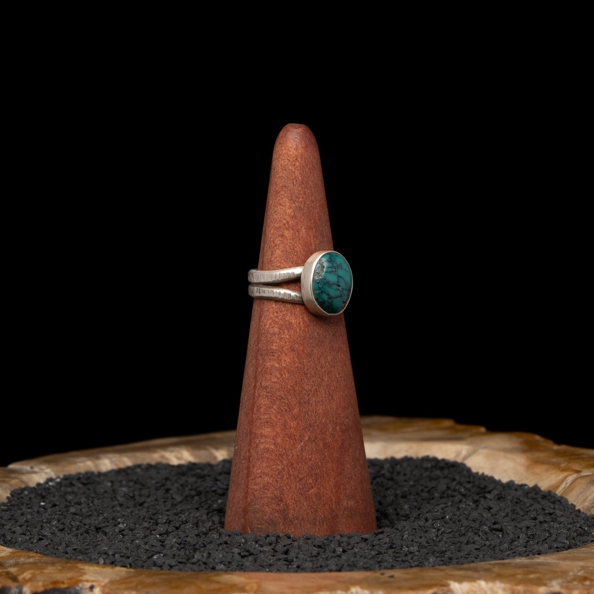 Hand textured & formed Sterling Silver Ring. Turquoise Stone.