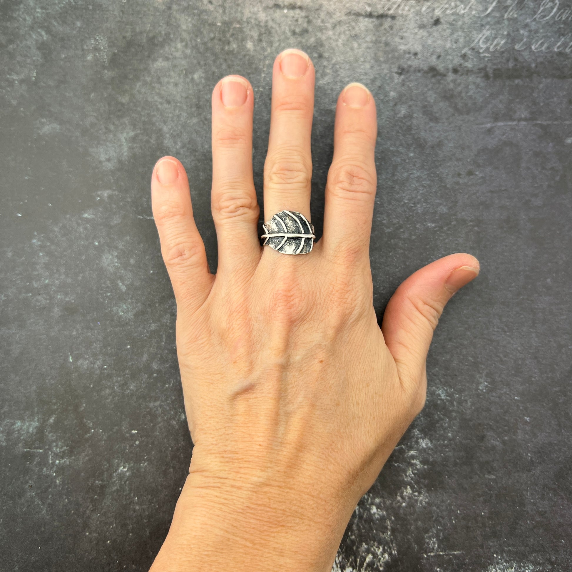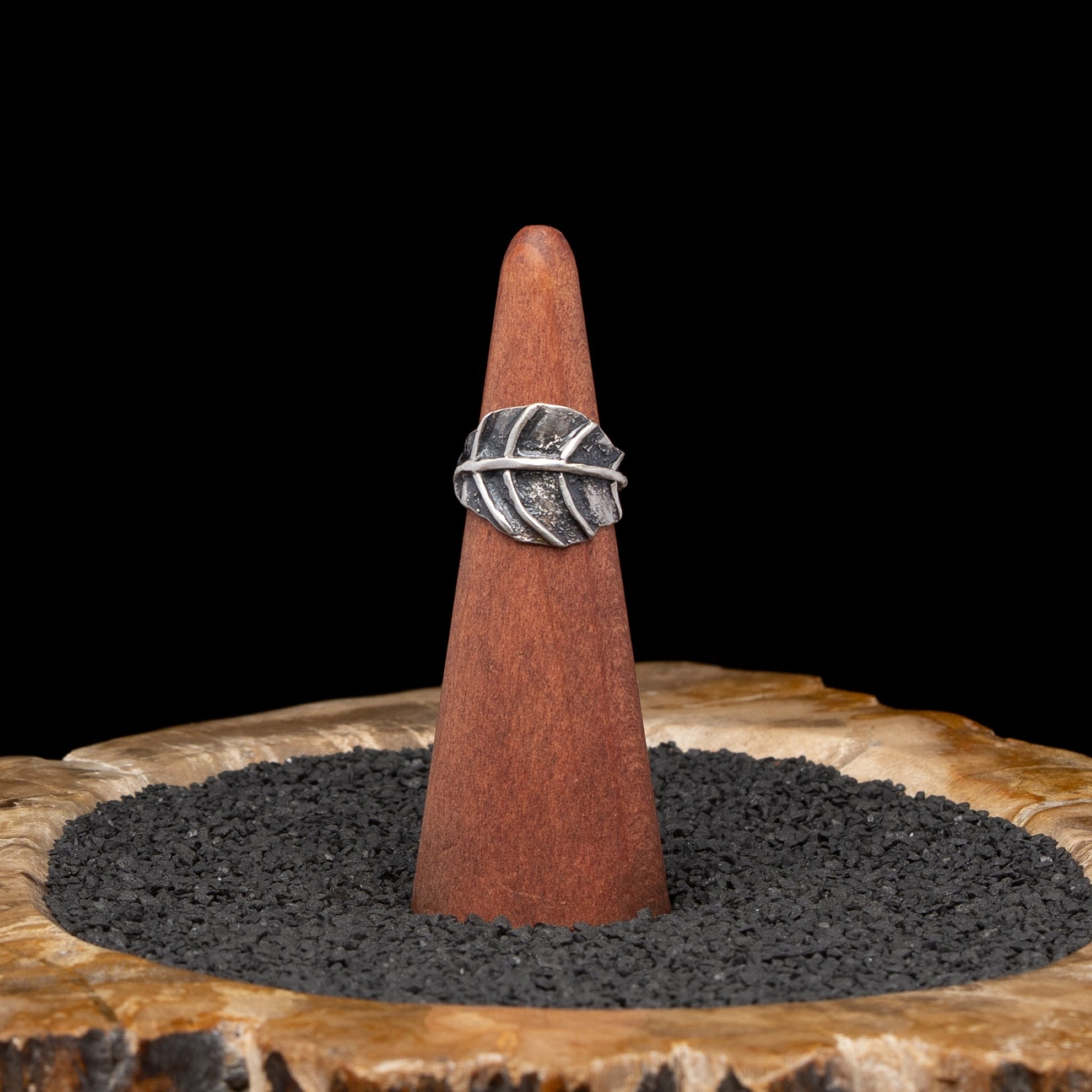 Hand fused & formed Sterling Silver Sage ring. Silver dust.
