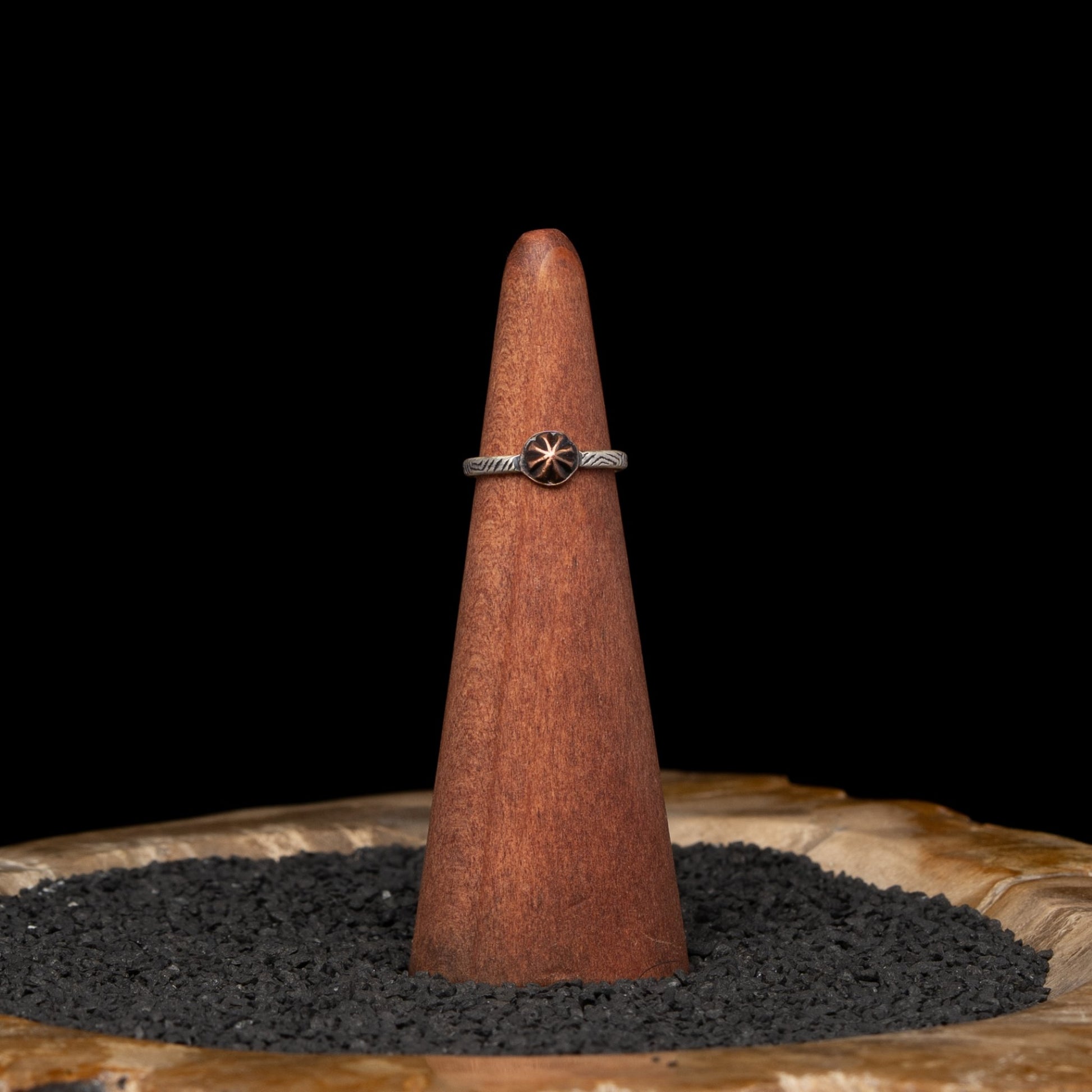 Hand patterned & formed Sterling Silver Ring. Handmade copper star.