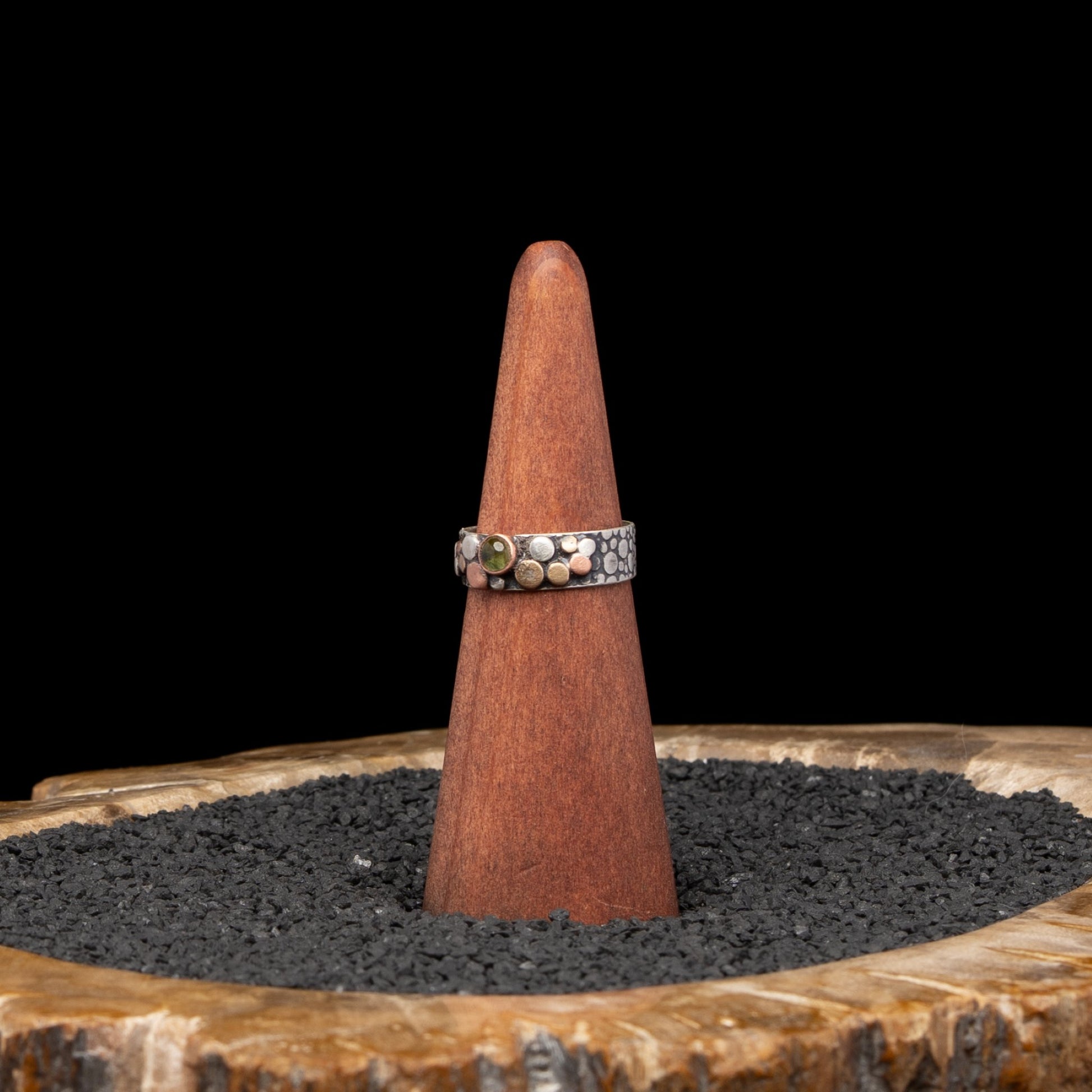 Hand patterned & formed Sterling Silver River Rock Ring. Handmade "river rocks" made of copper, silver, bronze & brass. Peridot Stone.