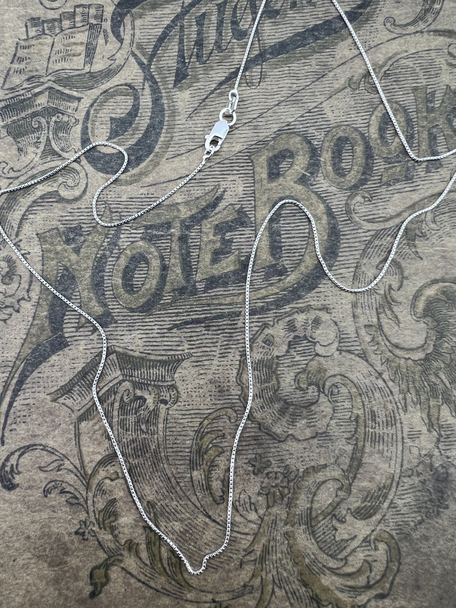 Sterling Silver box chain. 0.65mm width. Sterling Silver lobster clasp.